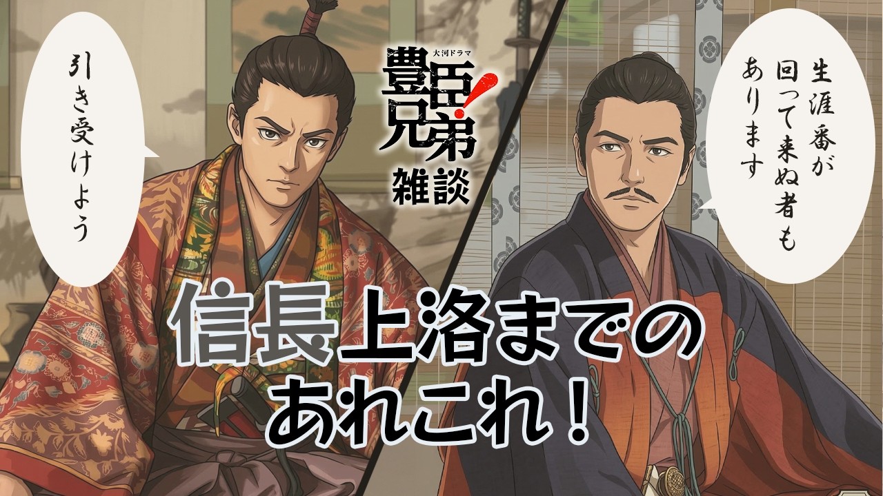 『豊臣兄弟!』第10回「信長上洛」の雑談です。永禄8年の13代将軍足利義輝の死から、永禄11年の上洛までの、義昭、信長の動向を簡単に解説しています。柴田勝家可愛い~~❤ も叫んでますw