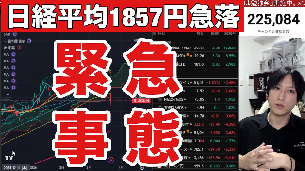 3/23【日本株大暴落続く。日経平均1857円急落ヤバイ‼️】中東情勢緊迫で世界同時株安。ドル円159円。WTI原油100ドル突破。金利急騰で米国株、ナスダック、半導体株、金先物も暴落。
