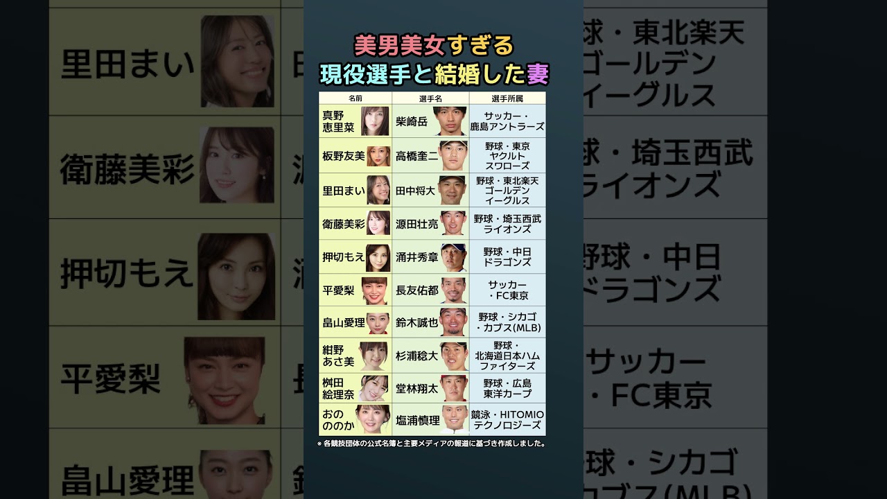 #芸能人 #アスリート #結婚 #最新情報 #プロ野球 #Jリーグ #メジャーリーグ #板野友美 #真野恵里菜 #平愛梨 #里田まい #夫婦 #豆知識 #日本の有名人 #理想の夫婦