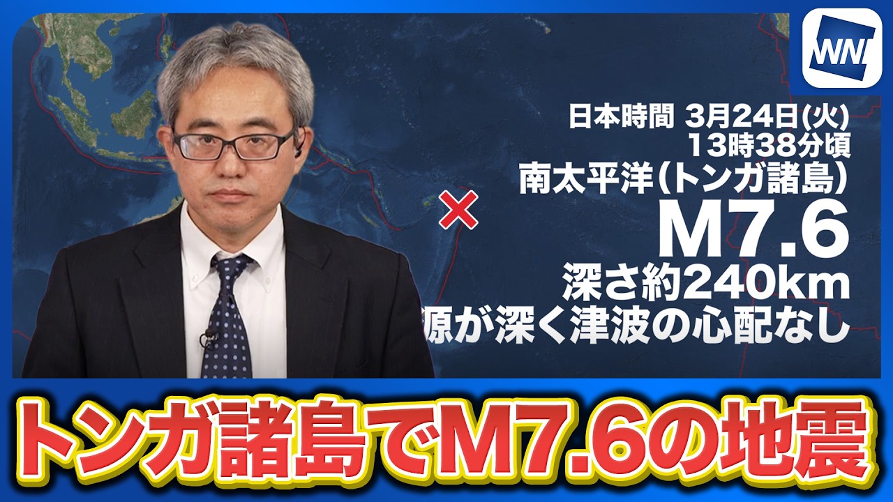【海外地震情報】南太平洋 トンガ諸島でM7.6の地震 震源が深く津波の心配なし