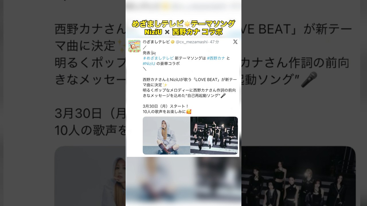 西野カナ × NiziUコラボ曲がめざましテレビのテーマソングに決定✨ #NiziU #jyp #西野カナ