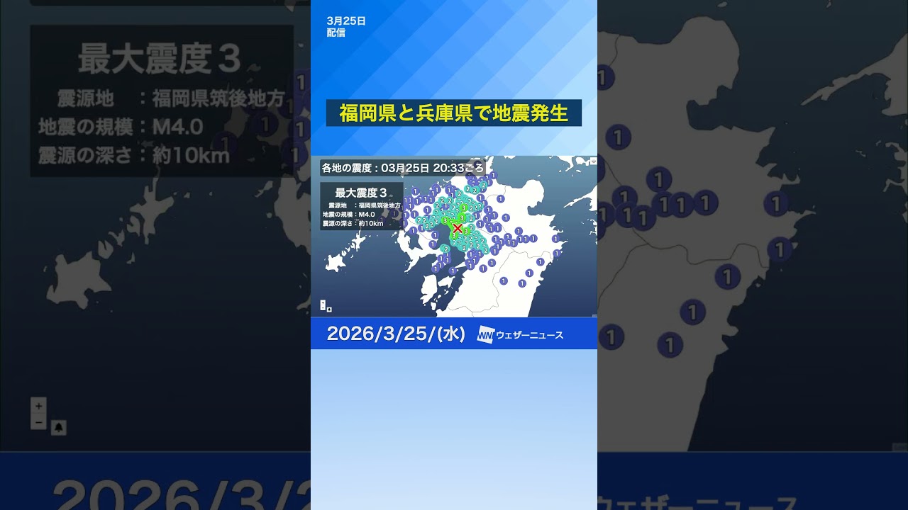 【地震情報】兵庫・福岡で揺れ 震源は内陸のプレート内 #news #通勤タイパ #地震 ウェザーニュースとauのコラボレーション 朝に役立つ情報をタイムパフォーマンスよくショートに手に入れよう。 通勤の時間に「天気」「学び」「癒し」「季節」「占い」などの情報をわかりやすく、楽しくショート動画で視聴できます。 毎朝の通勤時間が待ち遠しくなる! #pr 2026NEWSアナウンサーウェザーニュースニュース予報台風地震天気気温気象気象予報士減災防災震源情報