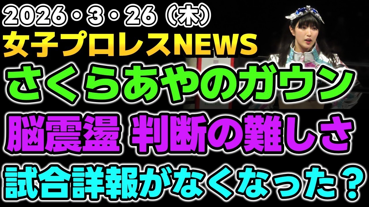 【2026年3月26日】さくらあやの新ガウンとこれから。脳震盪の判断の難しさ。公式の試合詳報がいつの間にかなくなった?