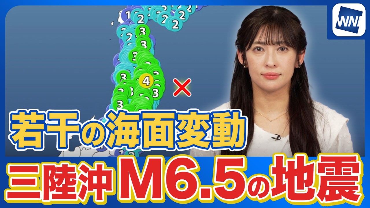 【地震】三陸沖でM6.5の地震 岩手県盛岡市で震度4 沿岸で若干の海面変動あり