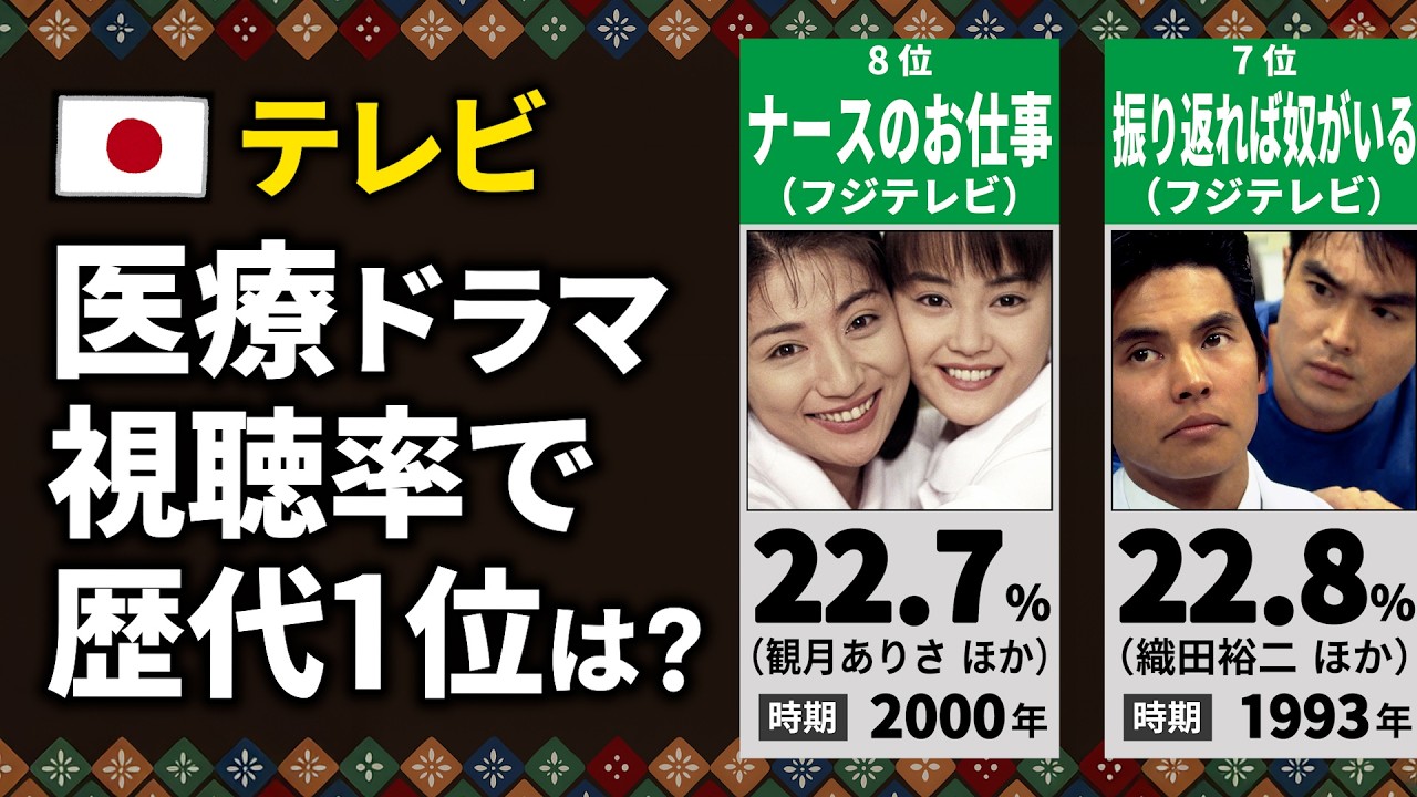 今回の動画は、テレビの医療ドラマの「最高視聴率」ランキングです!