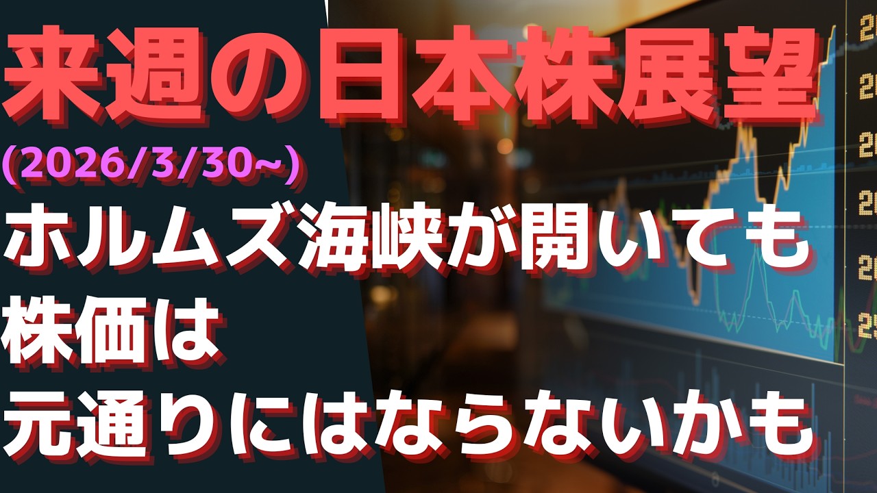 来週の日本株展望(2026/3/30~) ホルムズ海峡が開いても株価は元通りにはならないかも
