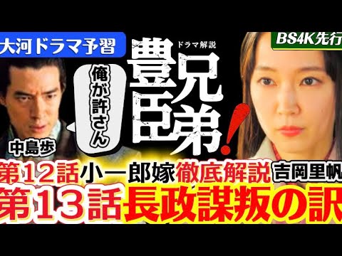 NHK大河ドラマ『豊臣兄弟!』第12回「小谷場の再会」の振り返り解説と、第13回「疑惑の花嫁」を徹底予習する考察動画です。毎週日曜お昼のBS4K先行放送を最速視聴し、歴史文献に基づいた独自の視点でドラマの裏側を読み解きます。
