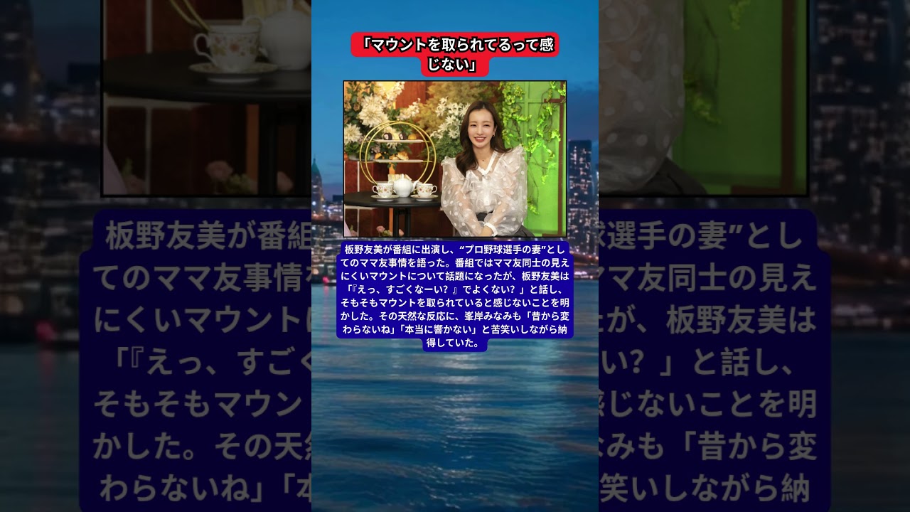 Share Facebook Twitter Pinterest LinkedIn 板野友美、“野球選手の妻”としてのママ友事情を語る ママ友との関係に悩む人も多い中で、板野友美の自然体な受け止め方が注目を集めている。 celebrity板野友美