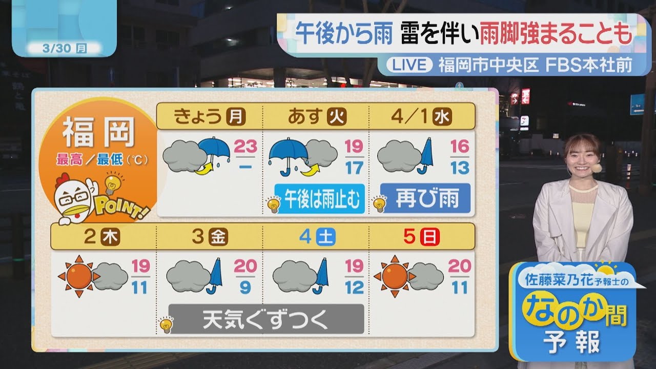 佐藤菜乃花気象予報士のお天気情報です。福岡と佐賀の30日の天気をお伝えします。