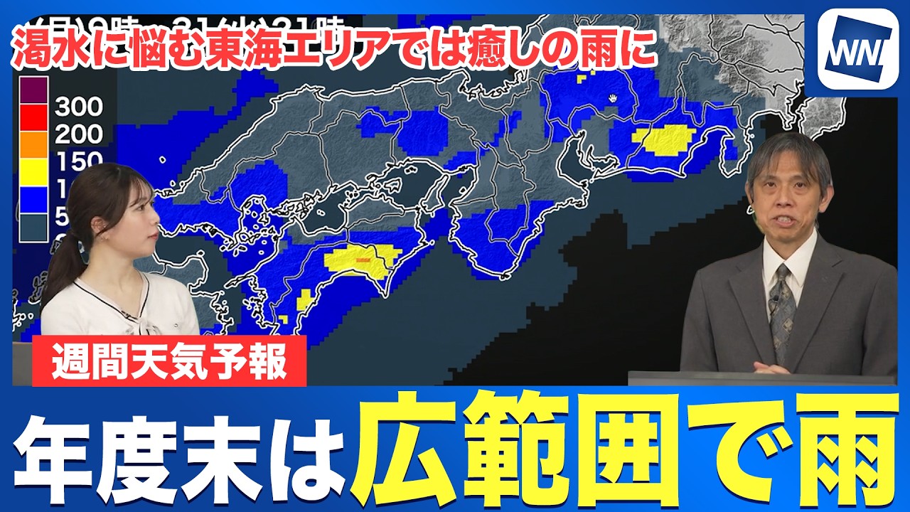 【週間天気】年度末は広い範囲で雨 四国や東海の山沿いでは100mm以上の大雨のおそれ