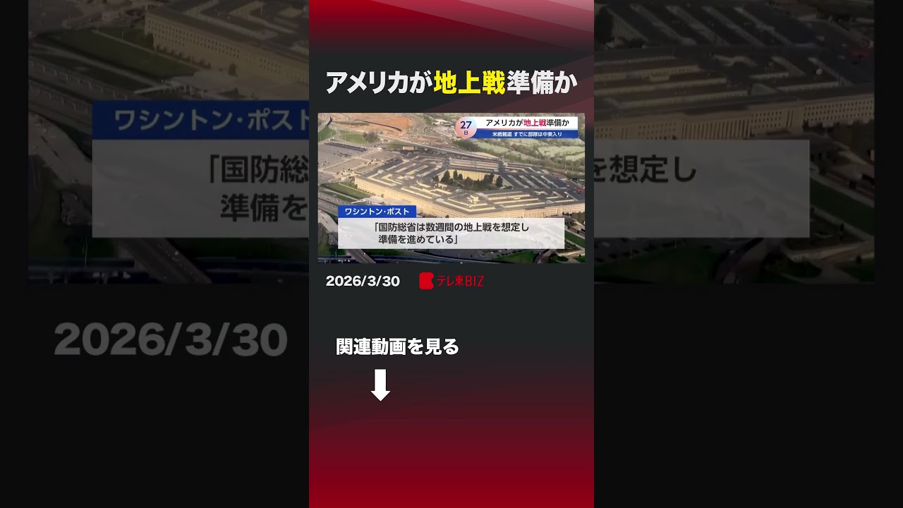 Share Facebook Twitter Pinterest LinkedIn アメリカが地上戦準備か #アメリカ #トランプ #イラン #地上戦 #米軍 2026年3月30日放送のニュース NEWSnews japan