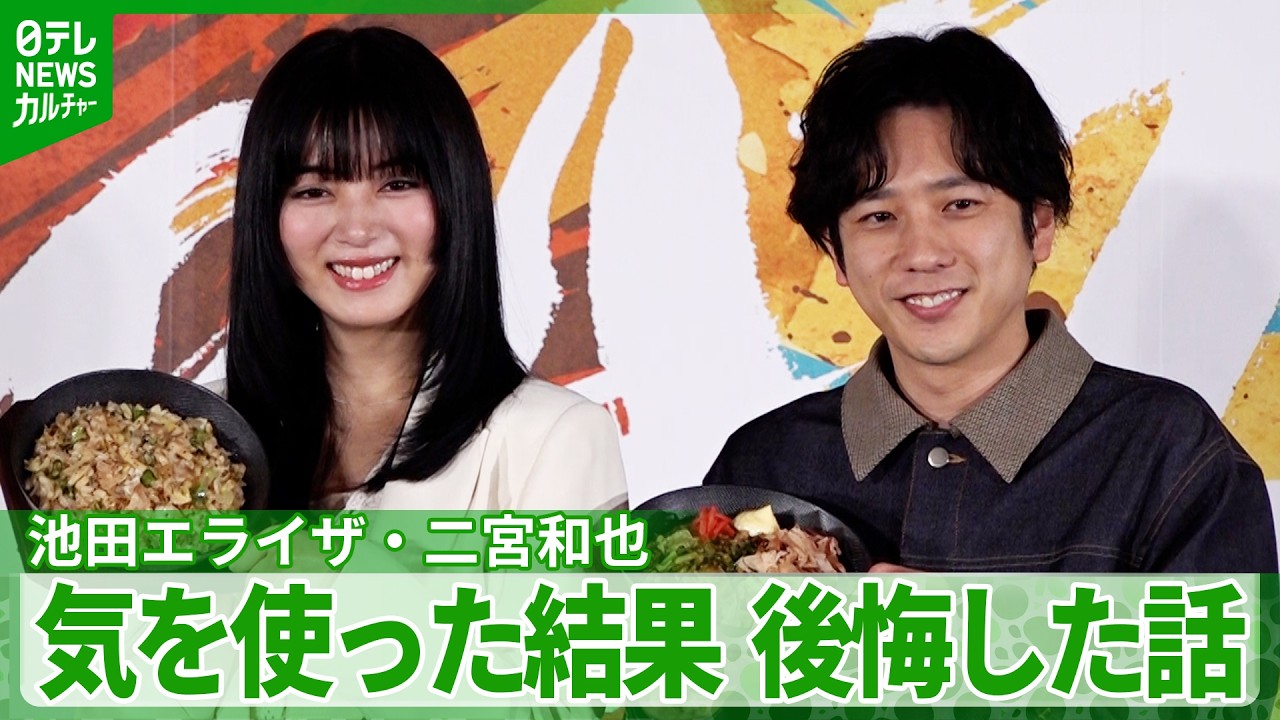 俳優の二宮和也さん(42)と池田エライザさん(29)が、飲食チェーン店のイベントに登場。後悔しているエピソードを明かしました。
