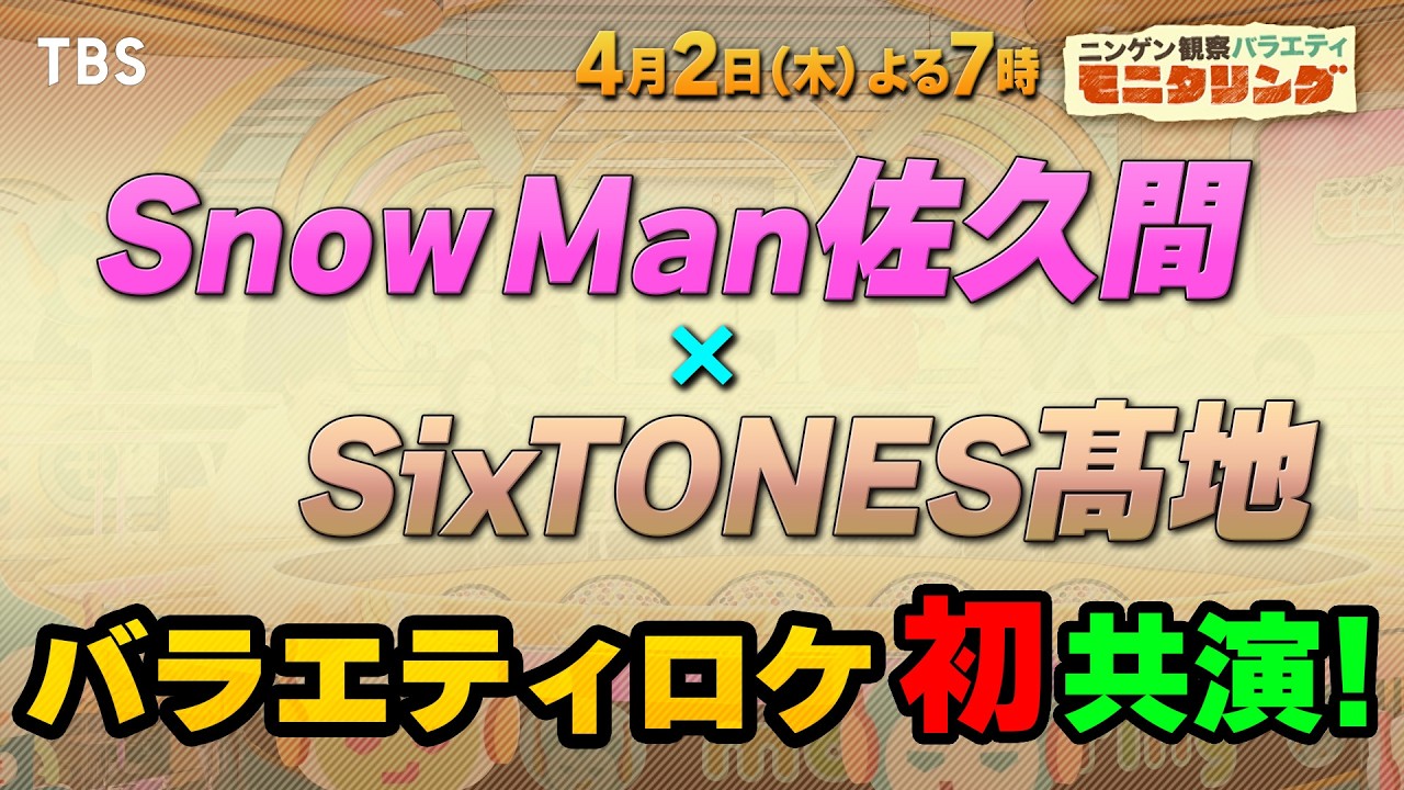 Snow Man佐久間 × SixTONES髙地! バラエティロケ初共演!『モニタリング』4/2(木)【TBS】
