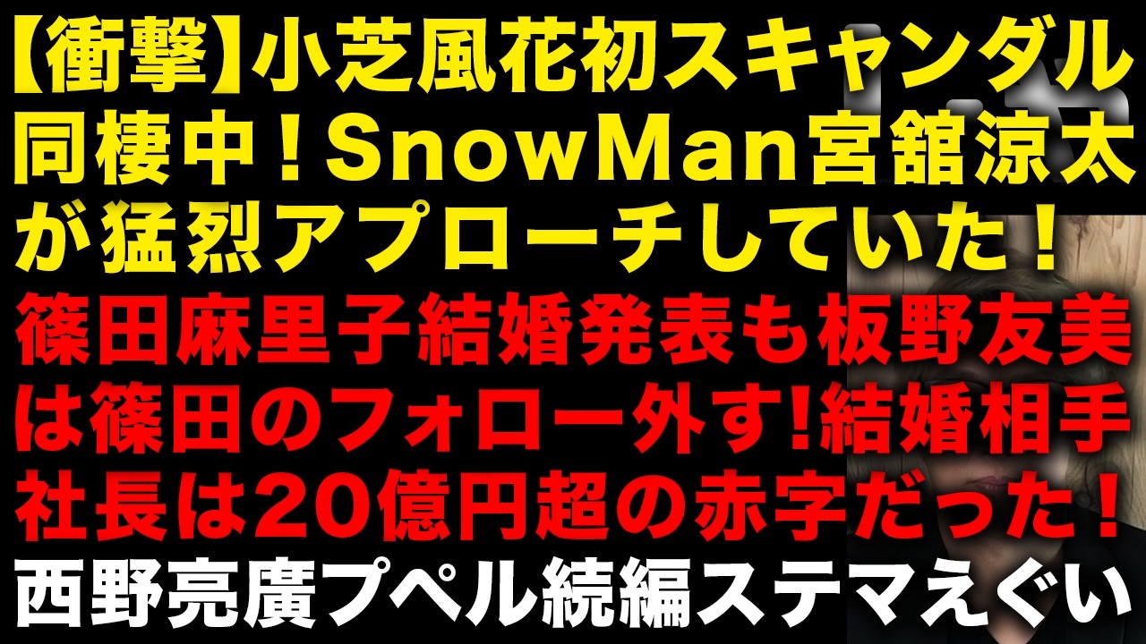 【緊急】宮根誠司が京都小5行方不明の”親族”を”遺族”と発言し大炎上 小芝風花初スクープ!あの人と同棲中だった 篠田麻里子の結婚相手社長が20億円超の赤字と判明 西野プペル西野だった!(TTMつよし