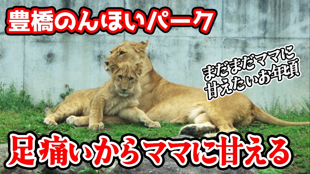 「ママ~、足が痛いよ~」先日の転落で足をケガしてしまったアルくん。歩き辛そうにしていますが…。しっかりママに甘えて(笑)のんびり過ごしておりました。はやくよくなってね~【のんほいパーク不定期巡回】