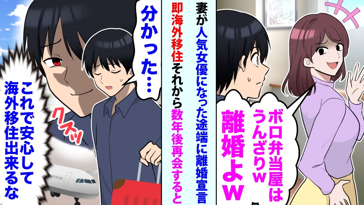【漫画】妻が人気女優になった途端に離婚宣言された俺「ボロ弁当屋はうんざりw離婚よw」俺は即海外移住→それから数年後再会すると 【スカッと】【恋愛マンガ動画】