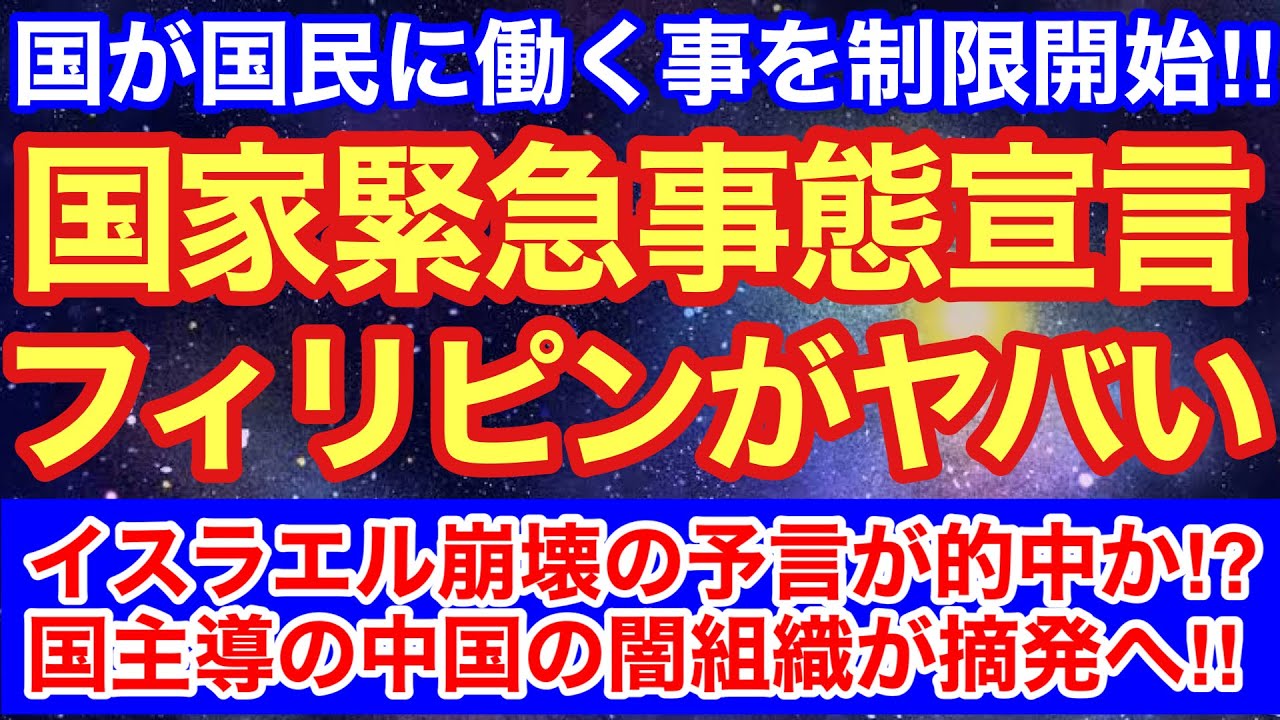 Share Facebook Twitter Pinterest LinkedIn フィリピン緊急事態宣言!ホルムズ海峡封鎖、イスラエル崩壊の聖書の予兆、中国の犯罪帝国〜世界同時危機の裏側を全部暴く〜 NEWS緊急事態宣言