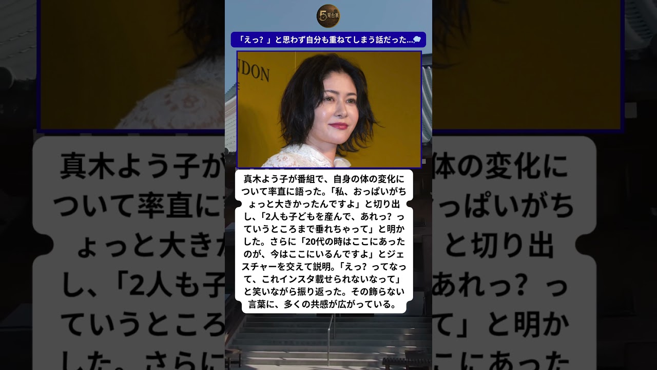 俳優・真木よう子が、番組で自身の体の変化について率直に語りました。「あれっ?」と思わず感じたというエピソードに、多くの共感の声が集まっています。年齢やライフステージの変化の中で、誰もが感じる小さな気づき。そのリアルな言葉に注目が集まっています。