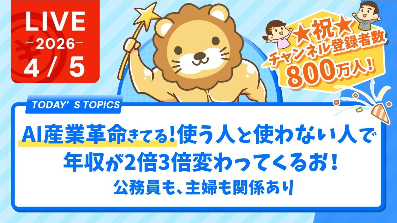 【家計改善/収入アップライブ】祝☆チャンネル登録800万人&AIで産業革命マジで来てる。使う人と使わない人で、年収が2倍3倍変わってくるお!公務員も、主婦も関係あり【4月5日8時30分まで】