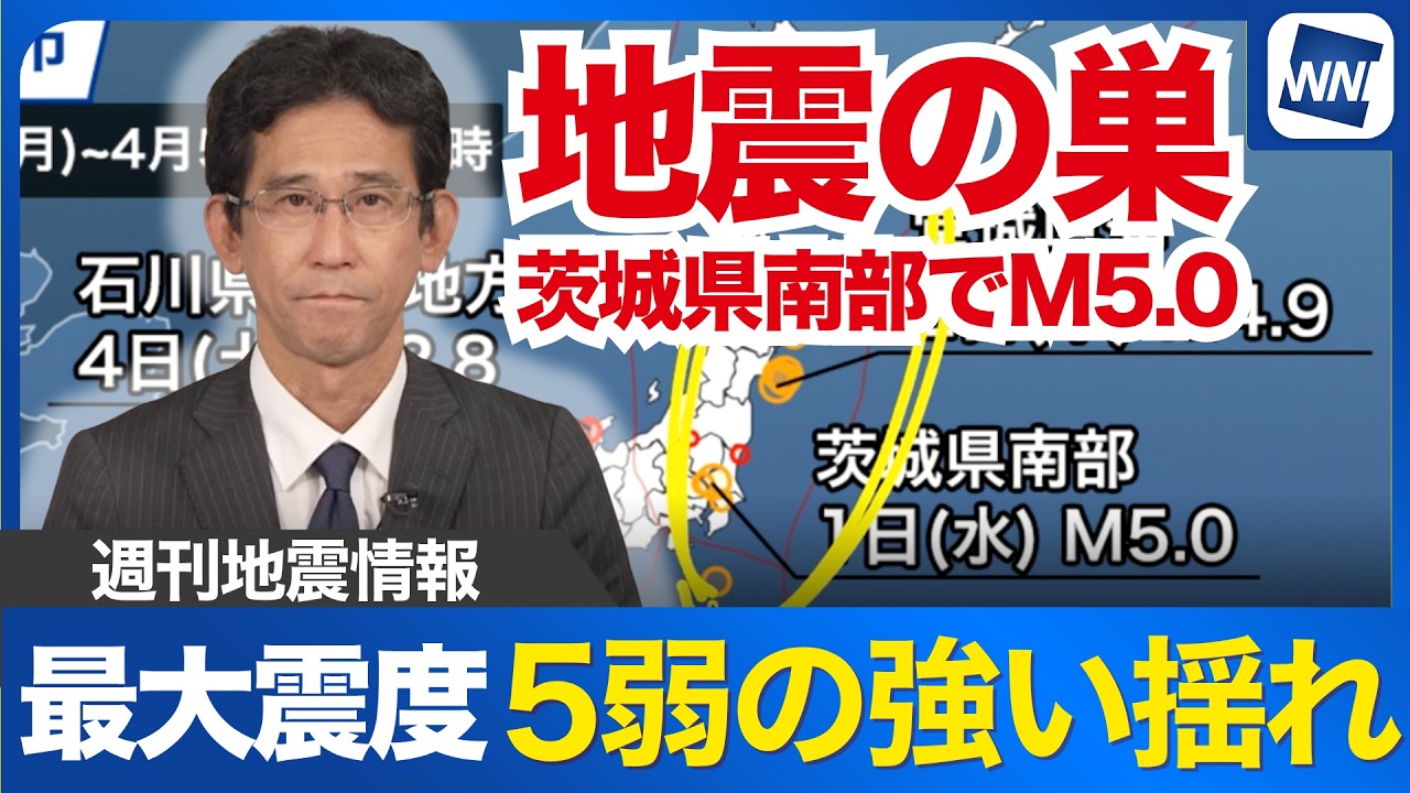 【週刊地震情報】「地震の巣」茨城県南部でM5.0 最大震度5弱の強い揺れ