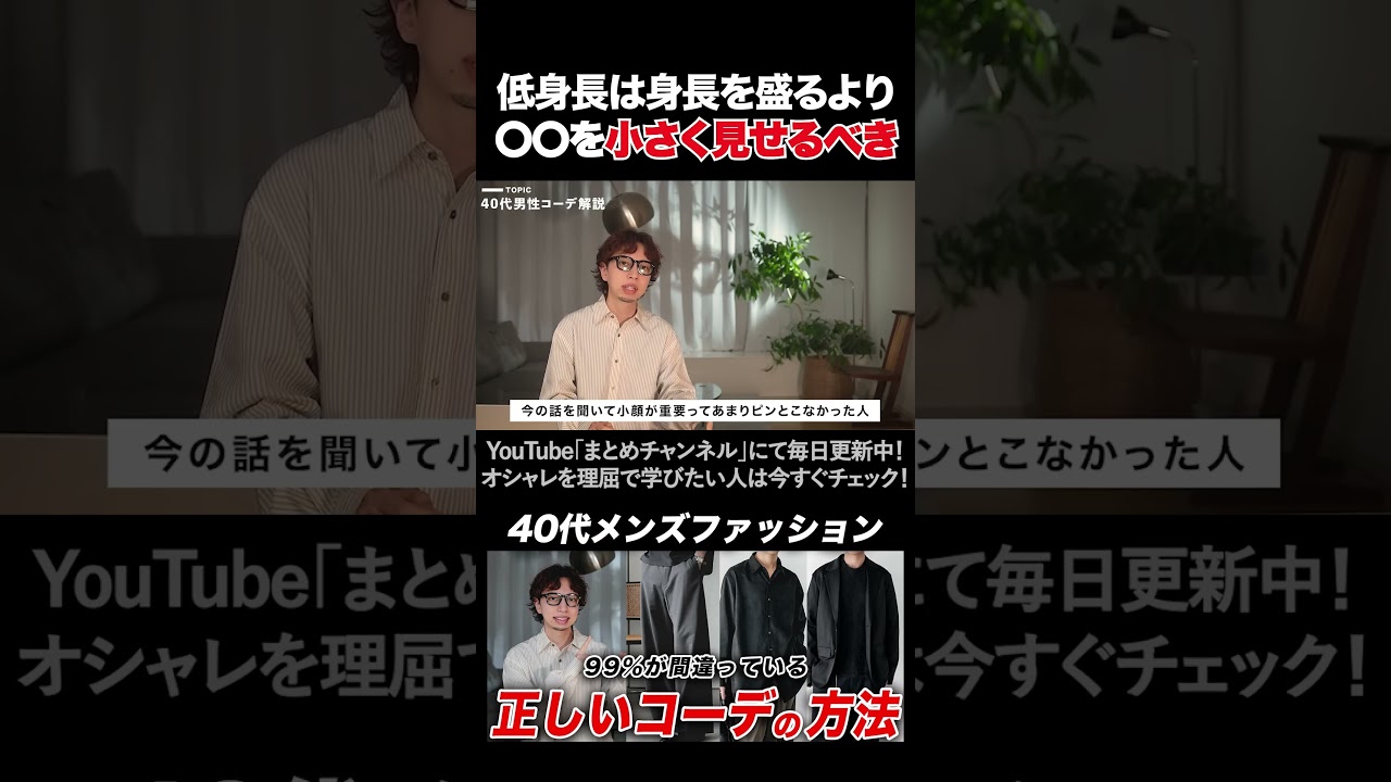 Share Facebook Twitter Pinterest LinkedIn ファッションは〇〇をよく見せることが重要 #shorts ファッションは〇〇をよく見せることが重要 #低身長 #ぽっちゃり 動画の続きやファッションに関する解説は、チャンネルホームから今すぐチェック! ーーーーーーーーーー このアカウントは「メンズのオシャレ」に特化した情報を発信しています。 参考になったらチャンネル登録もしていただけると嬉しいです。 fashionファッション