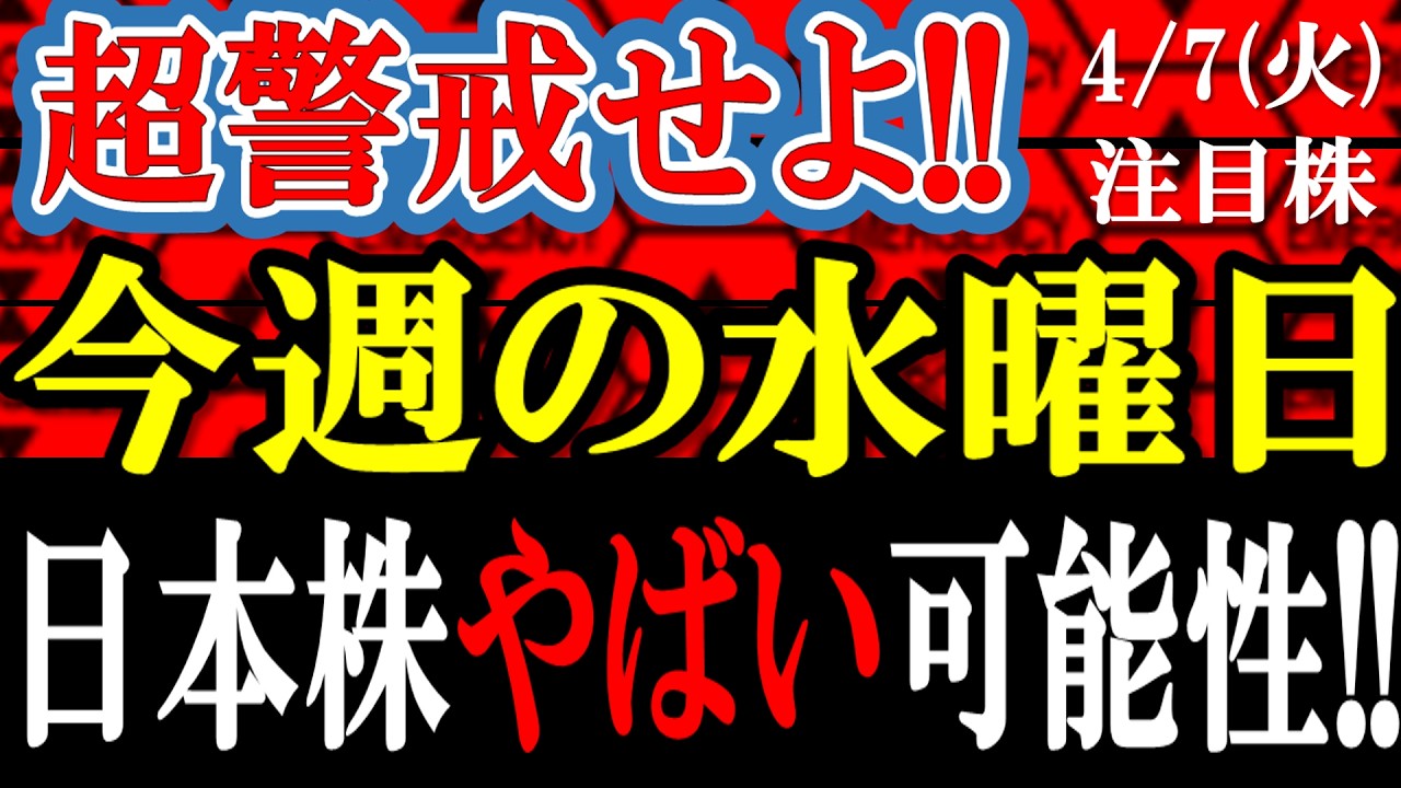 超警戒せよ!今週の水曜日、日本株がヤバいことになる可能性があります!! 【2026年4月7日(火)の注目株、日本株】