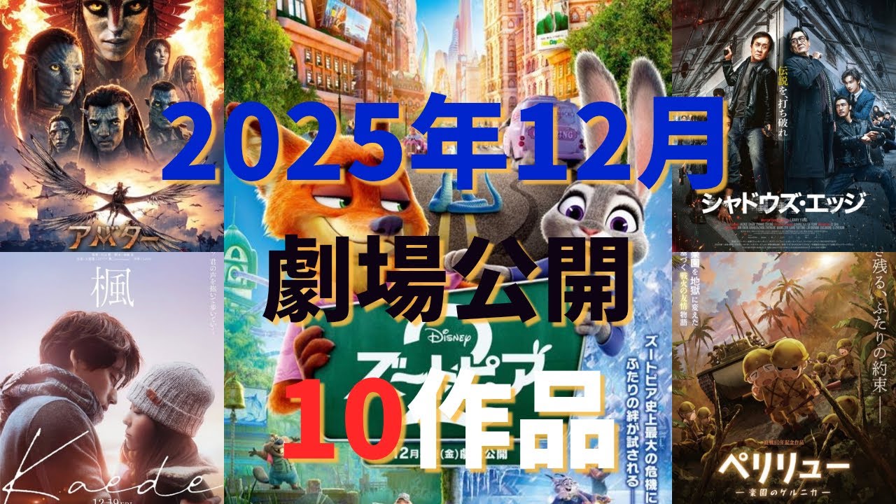 2025年12月劇場公開映画 10作品! 2025年12月に劇場公開される映画を厳選してご紹介。期待の10作品をラインナップしました。2025年最後を飾る劇場公開作品たち。今回も話題の洋画、邦画が勢揃い。鑑賞作品選びの参考にしていただけると幸いです。 #2025年10月公開映画#2025年10月映画#HIROKIのシネマライフ#アバターファイアーアンドアッシュ#オススメ映画#オススメ映画紹介#お勧め映画#お勧め映画紹介#ズートピア2#ペリリュー楽園のゲルニカ2025年映画movie新作映画紹介映画映画ランキング上映中最新映画作品紹介映画紹介楓洋画紹介邦画紹介