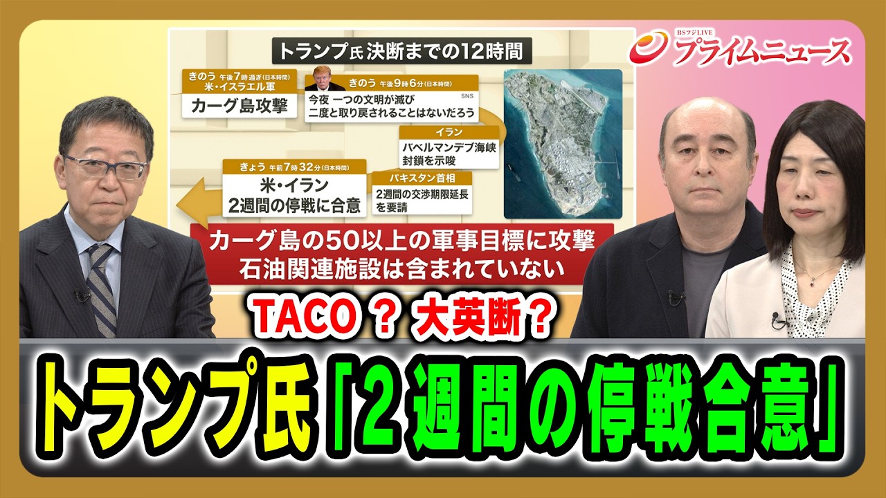 【TACO? 大英断?】トランプ氏「2週間の停戦合意」渡部恒雄×ジョセフ・クラフト×坂梨祥 2026/4/8放送<前編>【BSフジ プライムニュース】
