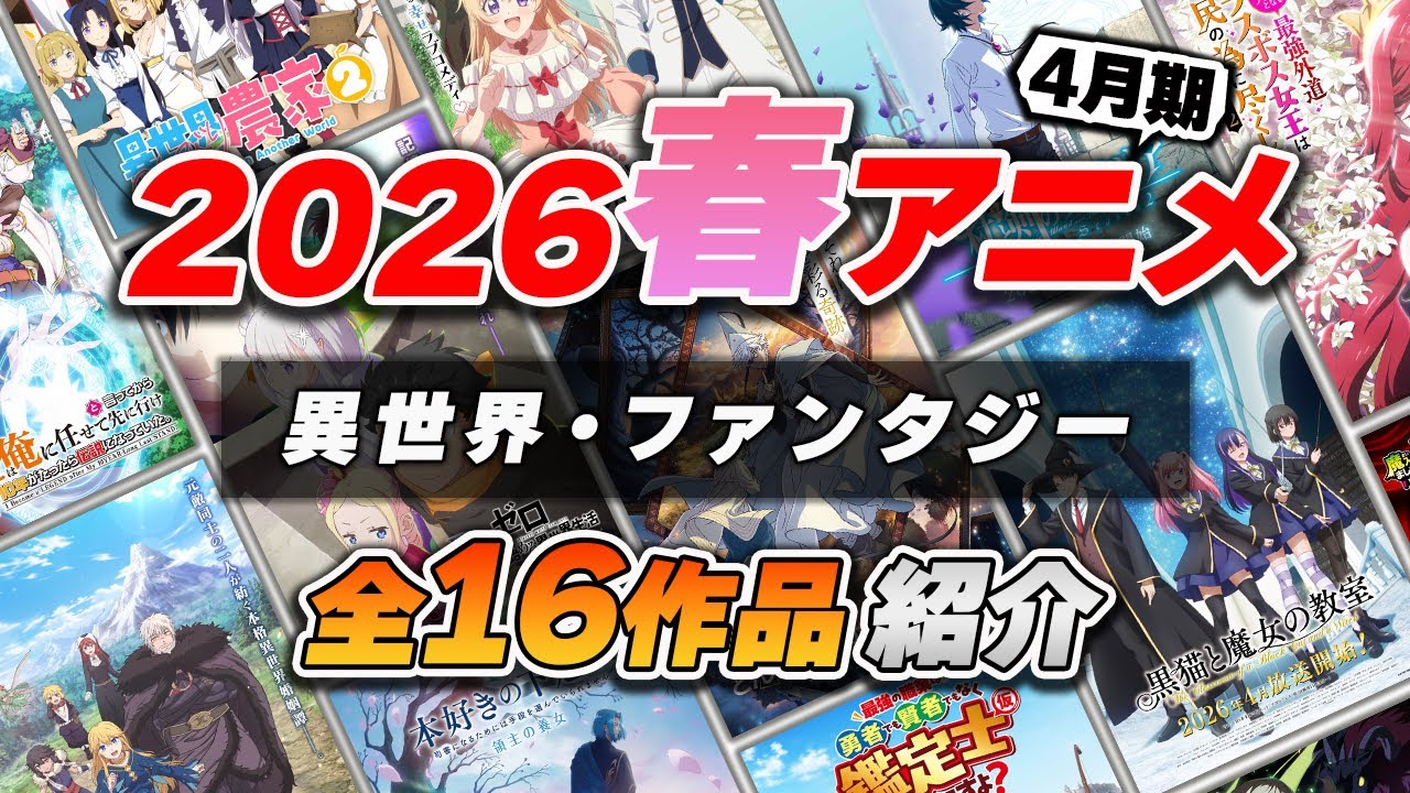 2026春アニメ(2026年春アニメ)は異世界・ファンタジーが過去最高レベルにアツい!転スラ・リゼロといった超大型続編から、とんがり帽子のような期待の初アニメ化作品まで、全16作品(※)+特別枠の合計17作品をPVとともに一挙に解説します。