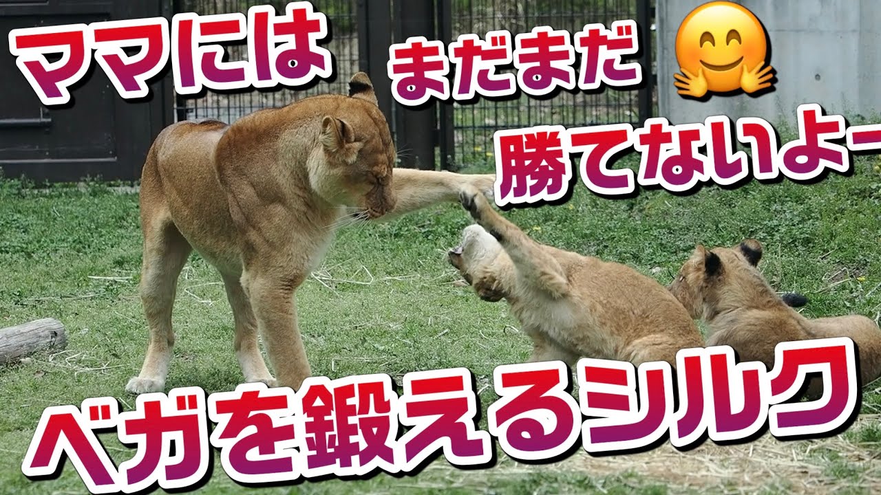 ママにはまだまだ勝てないよー【ベガを鍛えるシルクママ👩】 #のんほいパーク #ライオン #アース #旭山動物園 #桐生が岡動物園 #安佐動物園 #lion #茶臼山動物園 #育児 #ベガ #シルク