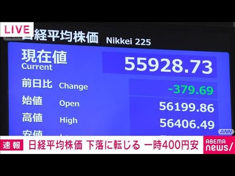 日経平均株価 下落に転じる 一時400円安 投資家の様子見姿勢強まる(2026年4月9日)