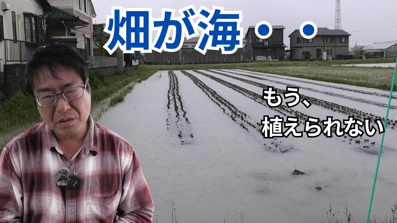 また雨・・。畑が海になりました…夏野菜の定植が完全に止まっています(2026.4.10)