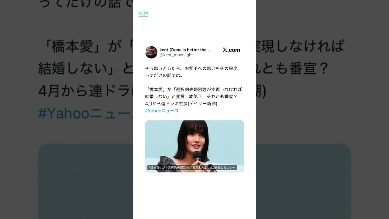橋本愛さん(30)「選択的夫婦別姓が実現しなければ結婚しない」