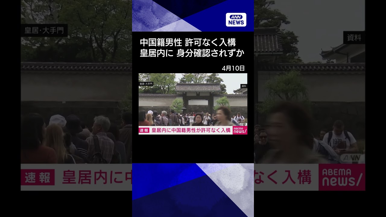 Share Facebook Twitter Pinterest LinkedIn 【ニュース】皇居内に中国籍の男性が許可なく入構 通勤時間帯で身分確認されずか #shorts 中国籍の男性が皇居内に許可なく入っていたことが分かりました。 関係者によりますと、10日午前8時ごろ、皇居の大手門から中国籍の男性が皇居内に許可なく入構したということです。 通常、皇居に入る際は皇宮警察の門番が確認をしますが、職員らが多く通る通勤時間帯だったため、身分確認がされずに皇居内に入ってしまったとみられています。 皇宮警察がすぐに身柄を確保し、事情を聴いたということです。 NEWSnews japan