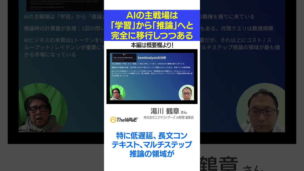 AIの主戦場は「学習」から「推論」へと完全に移行しつつある #AI #shorts #shorts ▶︎本編はこちら 【週刊AI】企業向け自律型エージェントの登場は、組織にとってのシンギュラリティになる|計4トピックのニュースから読みとるAI業界の潮流 agentic aiAIartificial intelligenceエージェント型AI人工知能