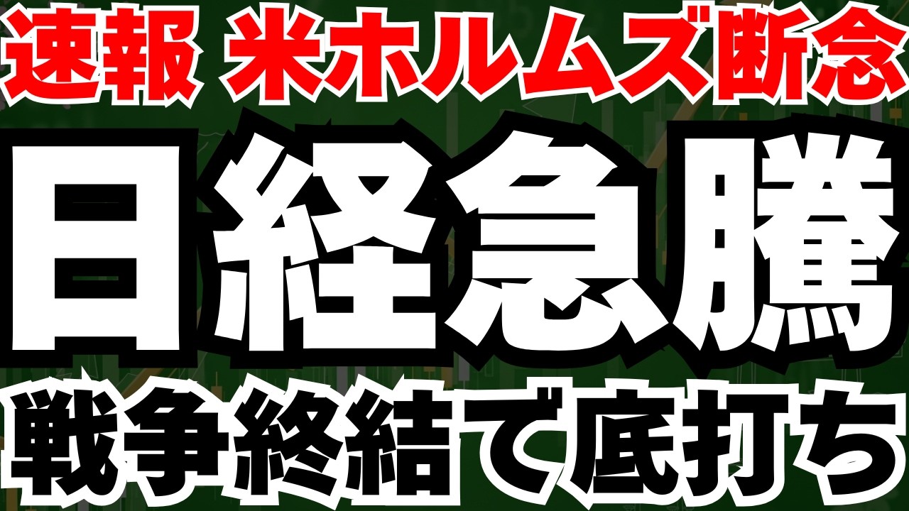 【超速報】トランプがホルムズ海峡を断念する衝撃発言で、日経15分で1000円急騰の真相と今後のシナリオ