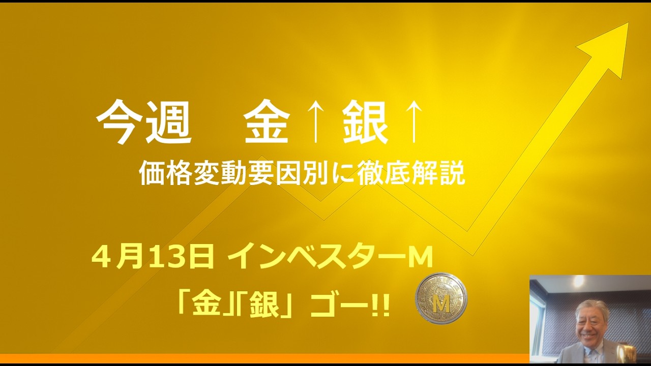 4月13日インベスターM「金」「銀」ゴー!! @金価格 @銀価格 @今週 金↑銀↑ @価格変動要因別徹底解説