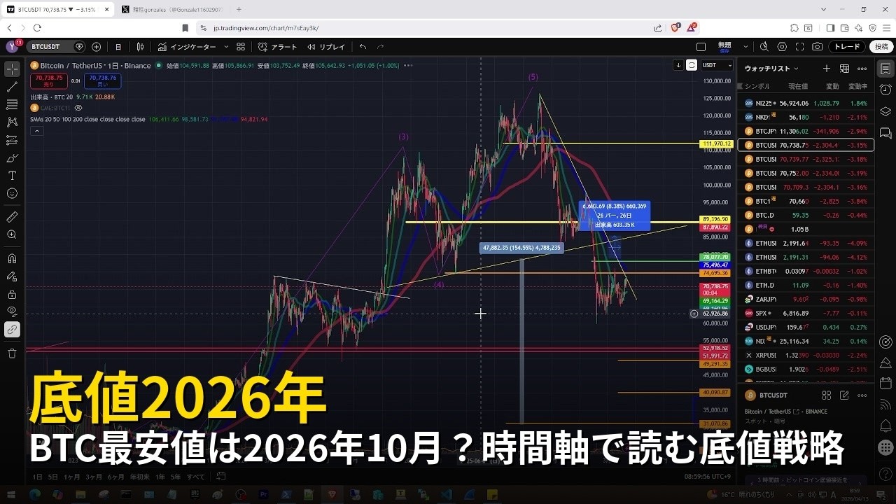 BTC最安値は2026年10月?時間軸で読む底値戦略【2026年4月13日ビットコイン相場分析】