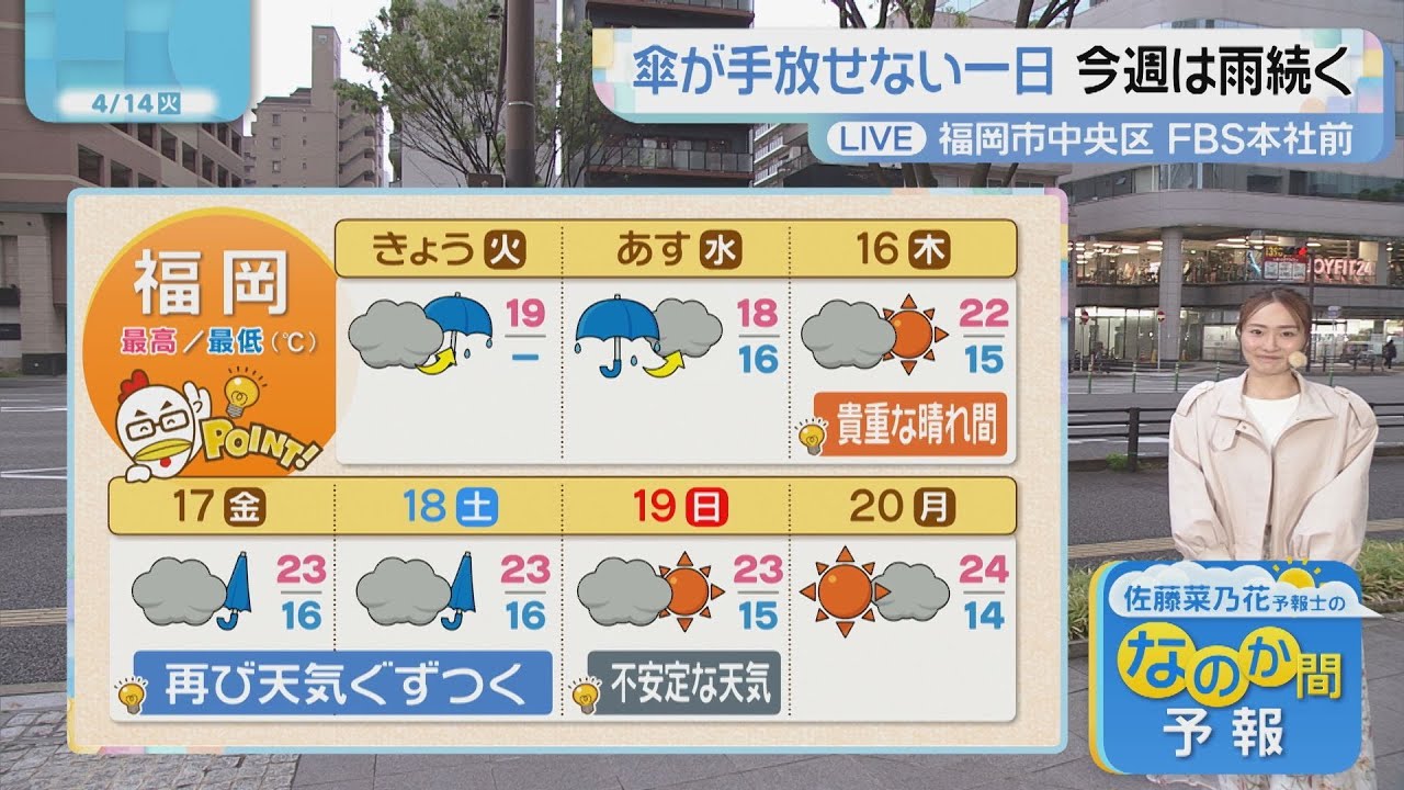 佐藤菜乃花(さとう・なのか)気象予報士のお天気情報です。福岡と佐賀の14日の天気をお伝えします。
