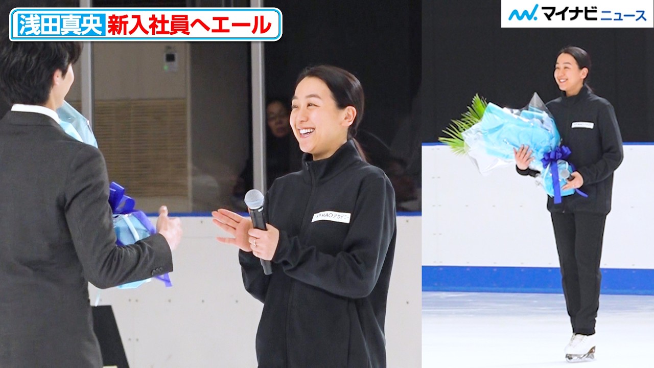 浅田真央、入社式で花束を贈呈 温かいエール「どんなことがあっても前に進んで…」