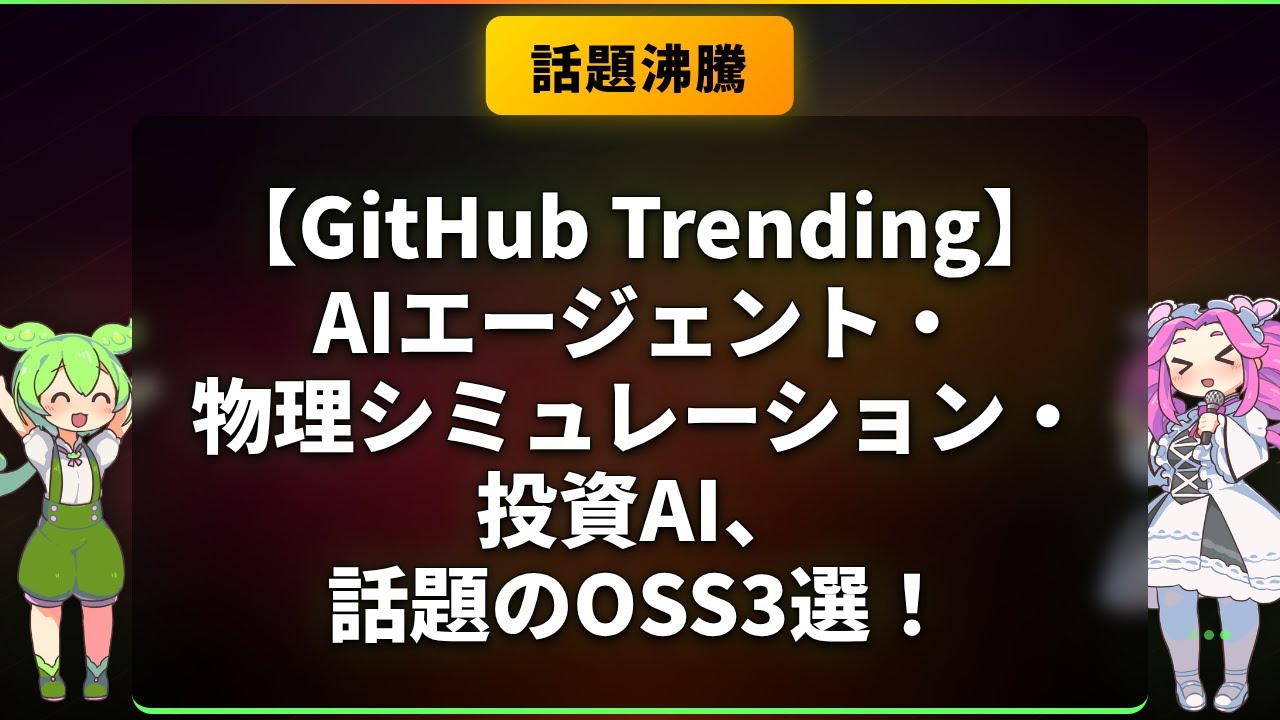 【GitHub Trending】AIエージェント・物理シミュレーション・投資AI、話題のOSS3選!