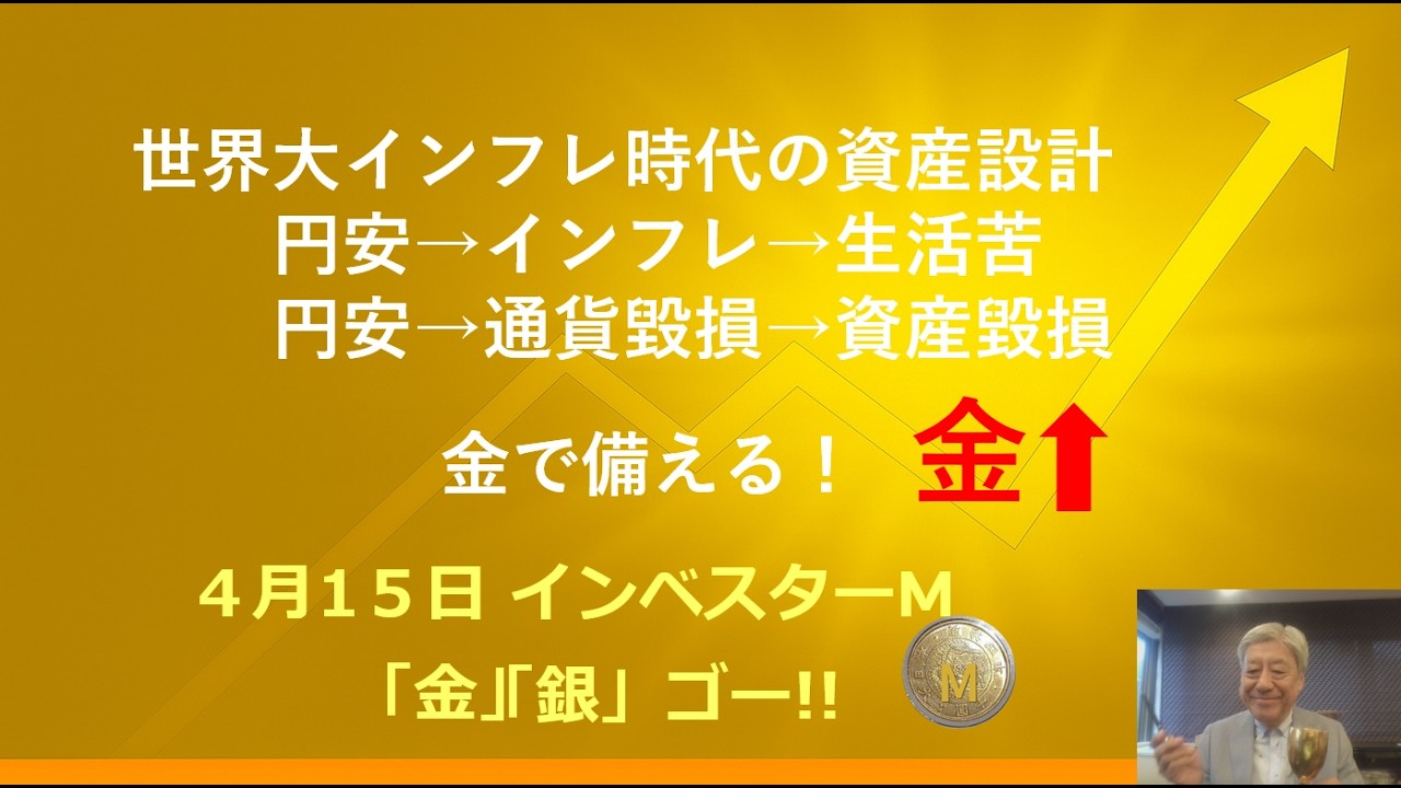4月15日インベスターM「金」「銀」ゴー!! @金価格 @銀価格 @世界大インフレ時代の資産設計 @金↑で備える #今週 金↑銀↑
