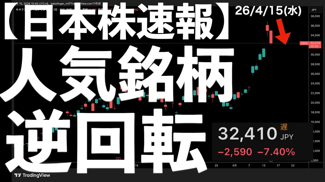 【日本株速報】26/4/15 人気銘柄が大幅安!逆回転! #日本株 #半導体 #topix