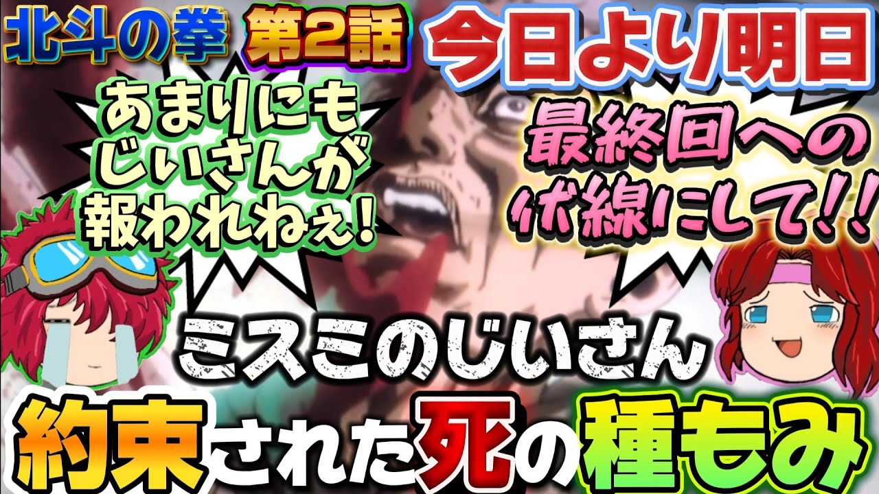 【新作アニメ北斗の拳】第2話『今日より明日』原作比較😆種もみじいさんの改変可能性はゼロ😇だけど制作スタッフ様へ是非お願いしたいことがあるんです😭😭😭【ゆっくり茶番劇】