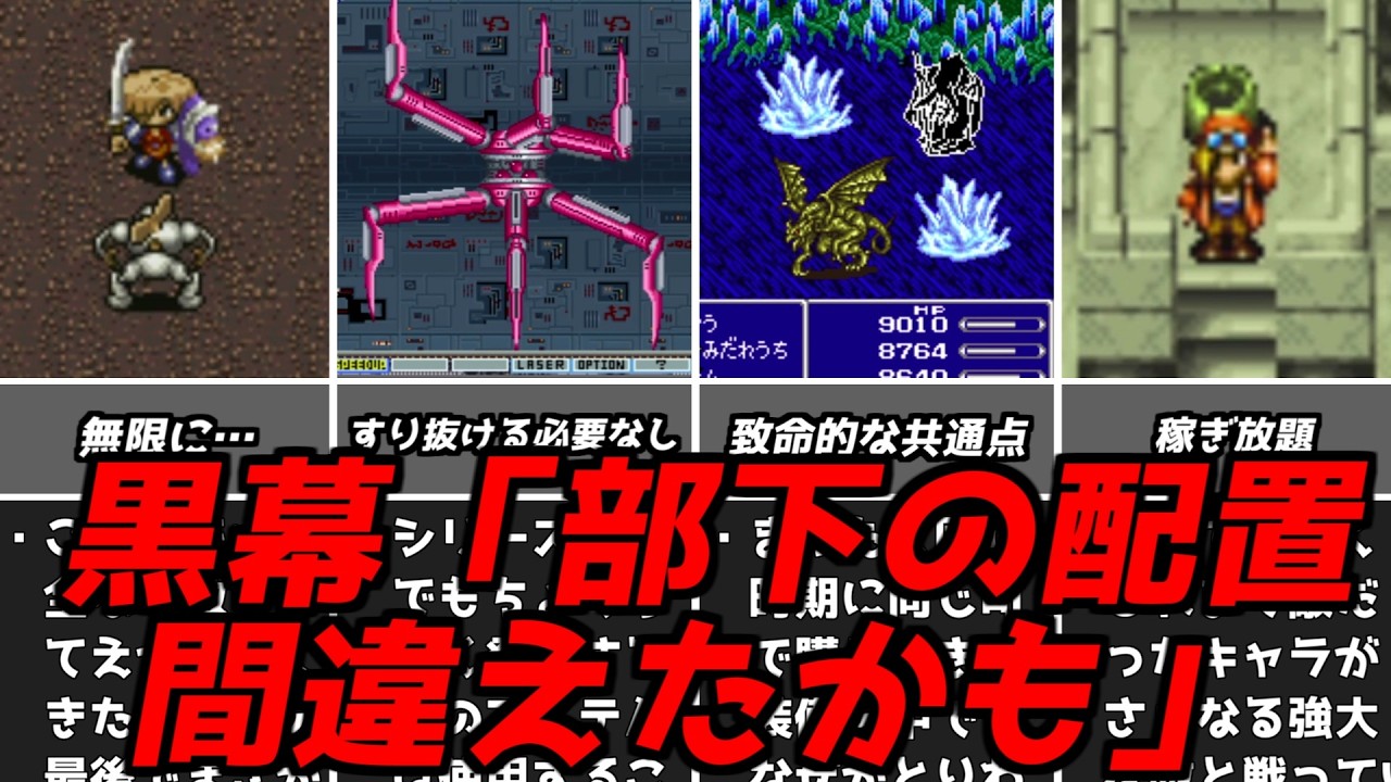 敵の配置って難しいなぁ・・・名作ゲーム解説黒幕が後悔しているであろう敵の配置!スーパーファミコン名作ソフトなど 名作ゲームの穴がある敵の配下について #レトロゲーム #スーパーファミコン 0:00 はじめに&ドラクエ4など 2:37 FF5 6:02 グラディウス2 8:09 ルドラの秘宝風来のシレン このチャンネルではスーパーファミコンやPS1時代を中心に 名作の解説ややり込みの動画を上げています 是非他の動画も楽しんでいってください 今回もご視聴いただきありがとうございました! gameGamingゲーム攻略ゆっくりゆっくり解説レトロゲーレトロゲーム