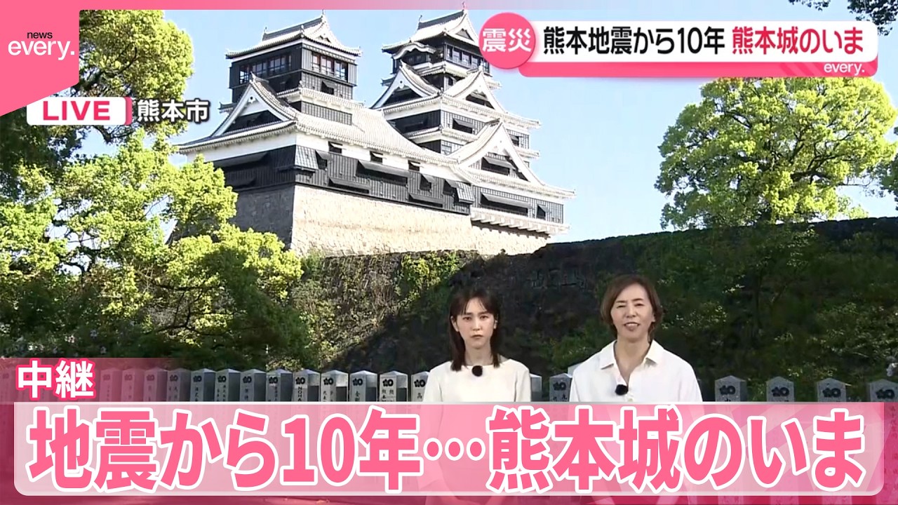 2度にわたり最大震度7の地震に見舞われた熊本県。本震から16日で10年です。熊本から桐谷美玲キャスターと発災当時、「news every.」のキャスターとして取材した陣内貴美子さんが伝えます。