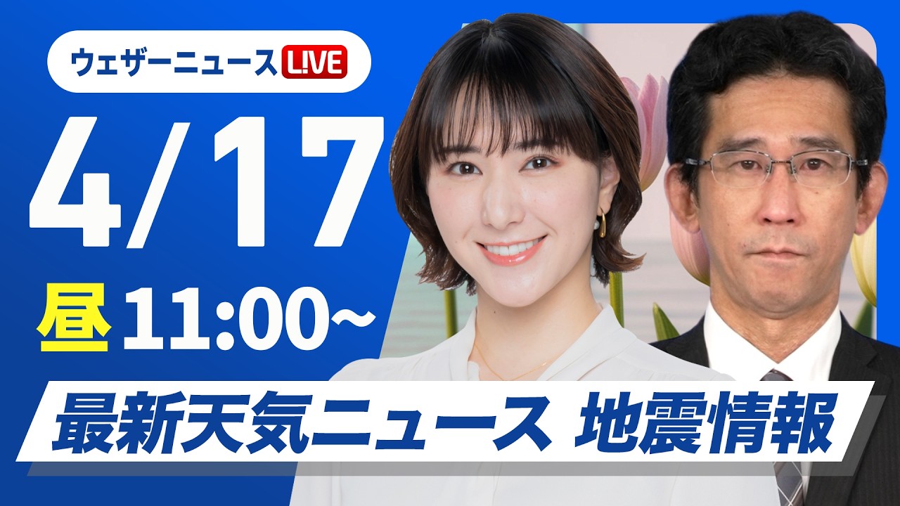 【ライブ配信】最新天気ニュース・地震情報 2026年4月17日(金) /西から雲増加も晴れる所が多い 日本海側で気温上昇〈ウェザーニュースLiVEコーヒータイム・白井ゆかり/山口剛央〉