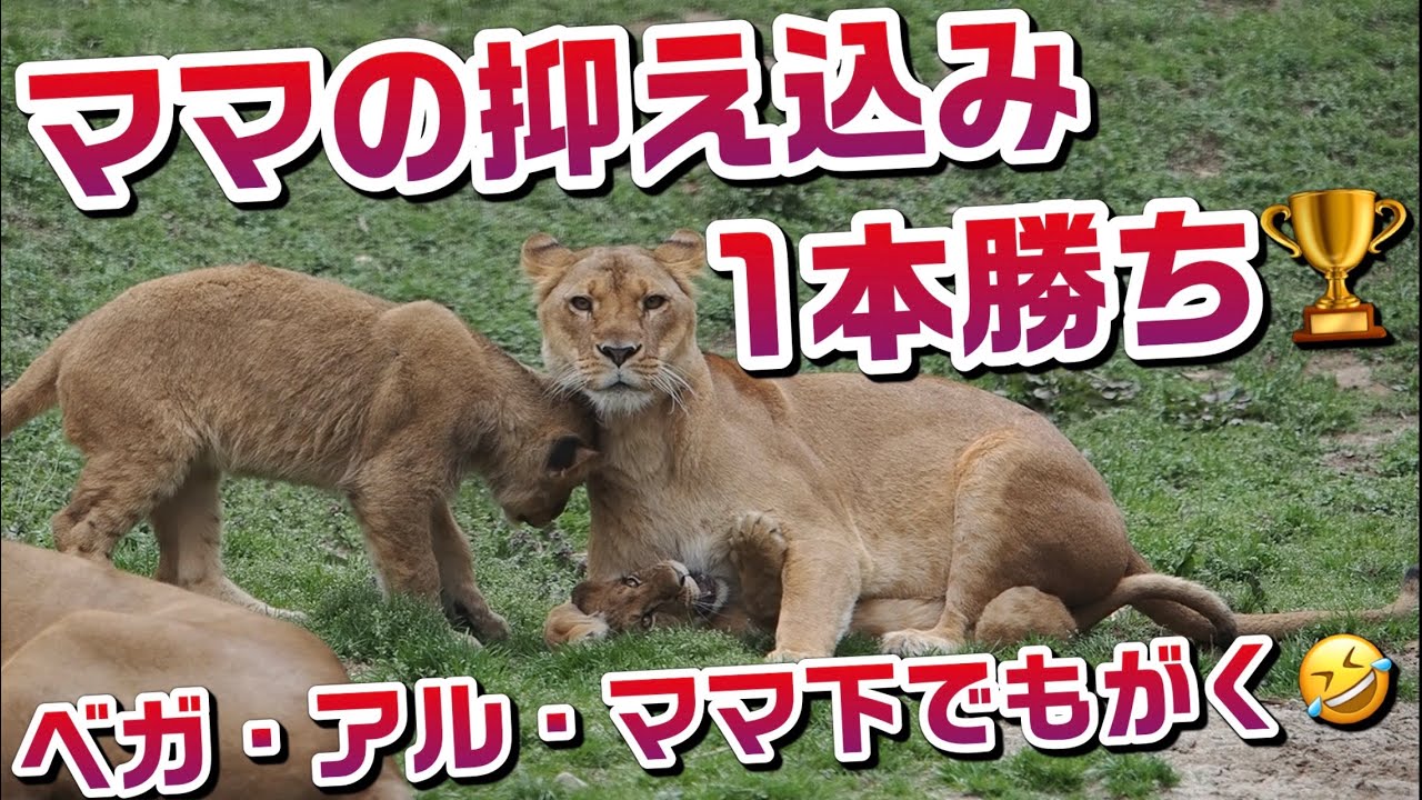 ママの抑え込み1本勝ち🏆【ベル・アルママの下でもがく😅】 #のんほいパーク #ライオン #アース #旭山動物園 #桐生が岡動物園 #安佐動物園 #lion #茶臼山動物園 #家族 #ベガ #アル celebrityのん