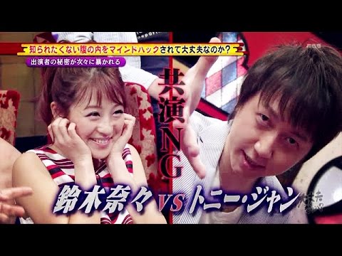 Share Facebook Twitter Pinterest LinkedIn 鈴木奈々が19日、MBS「メッセンジャーの○○は大丈夫なのか?」に出演。人の心を読み取るマインドハッカーに追求され、お笑い芸人の「T・Y」と共演NGであることを自白しました。 「人の脳内に侵入して操ってしまうマインドハッカー」として中国人のトニー・ジャンが出演。トニーは「読み取るだけじゃなくてコントロールできる」と豪語。番組内で共演者の心を次々と見破り、鈴木は「人間じゃない!」などと驚いた。 トニー・ジャンマインドハッカー共演NG鈴木奈々