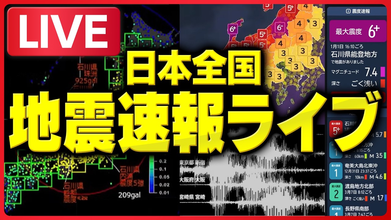 【地震ライブ】緊急地震速報ライブ配信中 リアルタイム地震監視(震度速報 / 津波警報・注意報 / 強震モニタ)